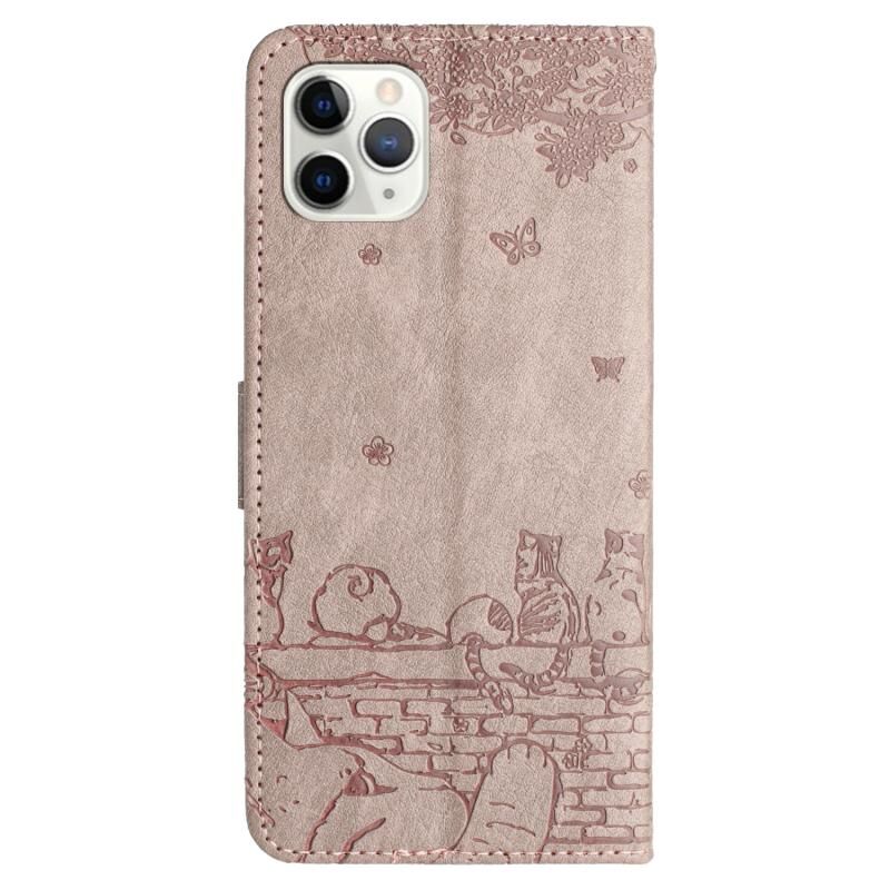 For iPhone 11 Pro Cat Embossing Pattern Leather Phone Case with Lanyard(Grey)
