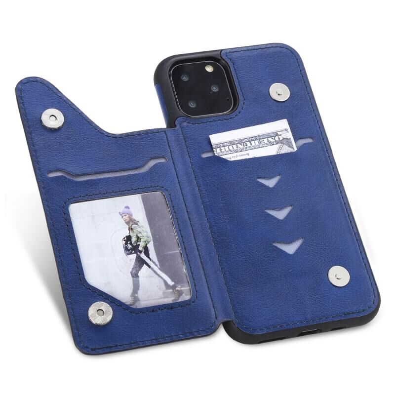 For iPhone 11 Pro Cat Tree Embossing Pattern Shockproof Protective Case with Card Slots & Photo Frame & Holder(Blue)