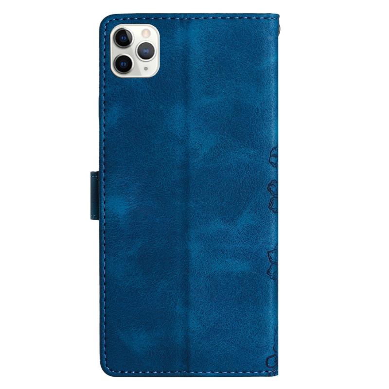 For iPhone 11 Pro Cherry Blossom Butterfly Skin Feel Embossed PU Phone Case(Blue)