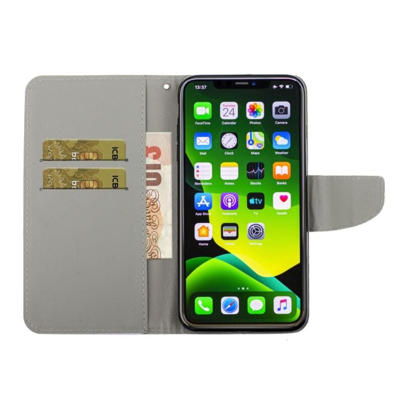 Θήκη δέρματος οριζόντιας αναδίπλωσης με σχέδιο έγχρωμης ζωγραφικής για iPhone 11 Pro με βάση & υποδοχές καρτών & πορτοφόλι (Λιβελούλα Λουλούδι)