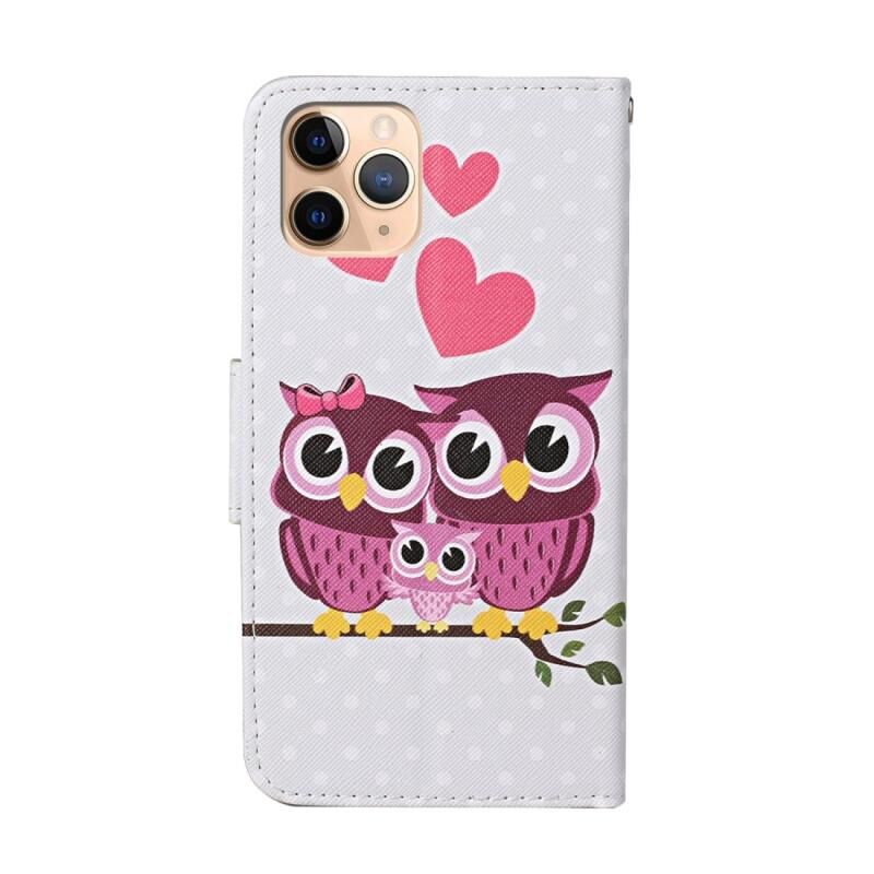 Θήκη δέρματος οριζόντιας αναδίπλωσης με σχέδιο πολύχρωμης ζωγραφικής για iPhone 11 Pro με βάση & υποδοχές καρτών & πορτοφόλι (Οικογένεια Κουκουβάγιας)