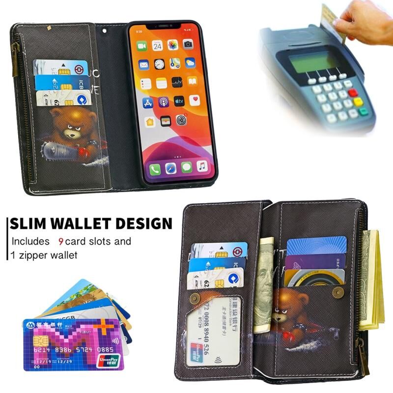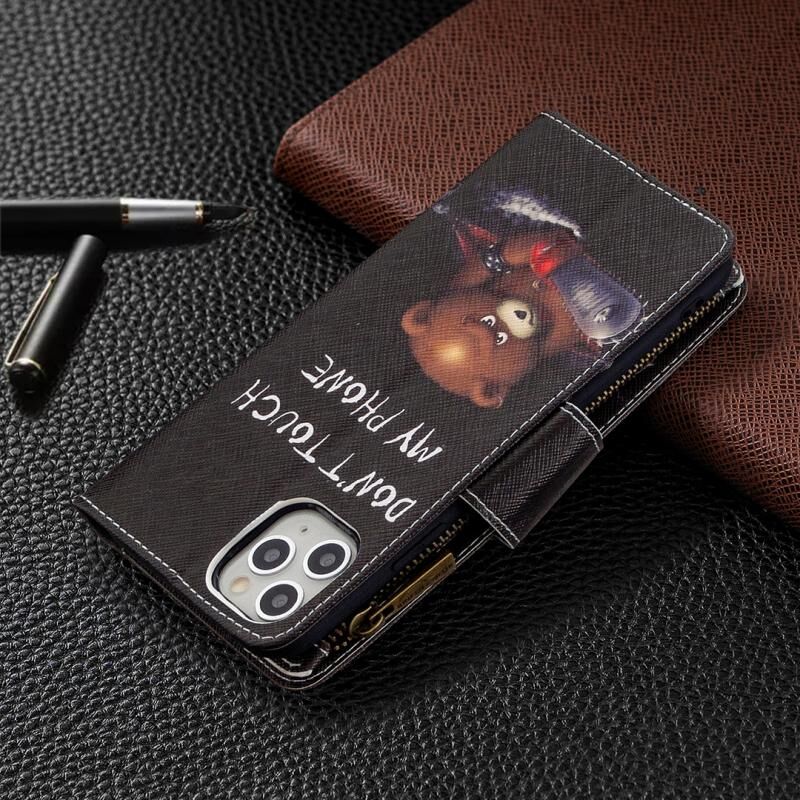 For iPhone 11 Pro Colored Drawing Pattern Zipper Horizontal Flip Leather Case with Holder & Card Slots & Wallet(Bear)