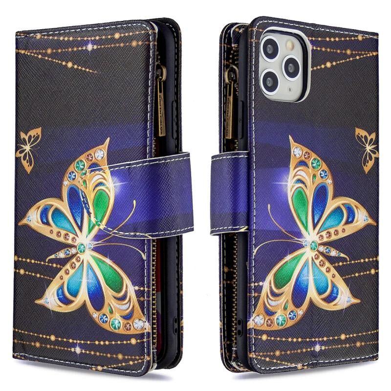 For iPhone 11 Pro Colored Drawing Pattern Zipper Horizontal Flip Leather Case with Holder & Card Slots & Wallet(Butterfly)