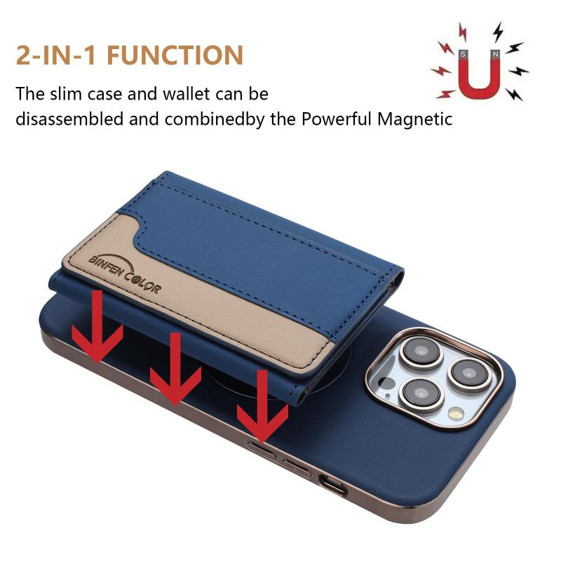 For iPhone 11 Pro Colour Matching Horizontal Magnetic Card Bag RFID MagSafe Phone Case(Dark Blue)