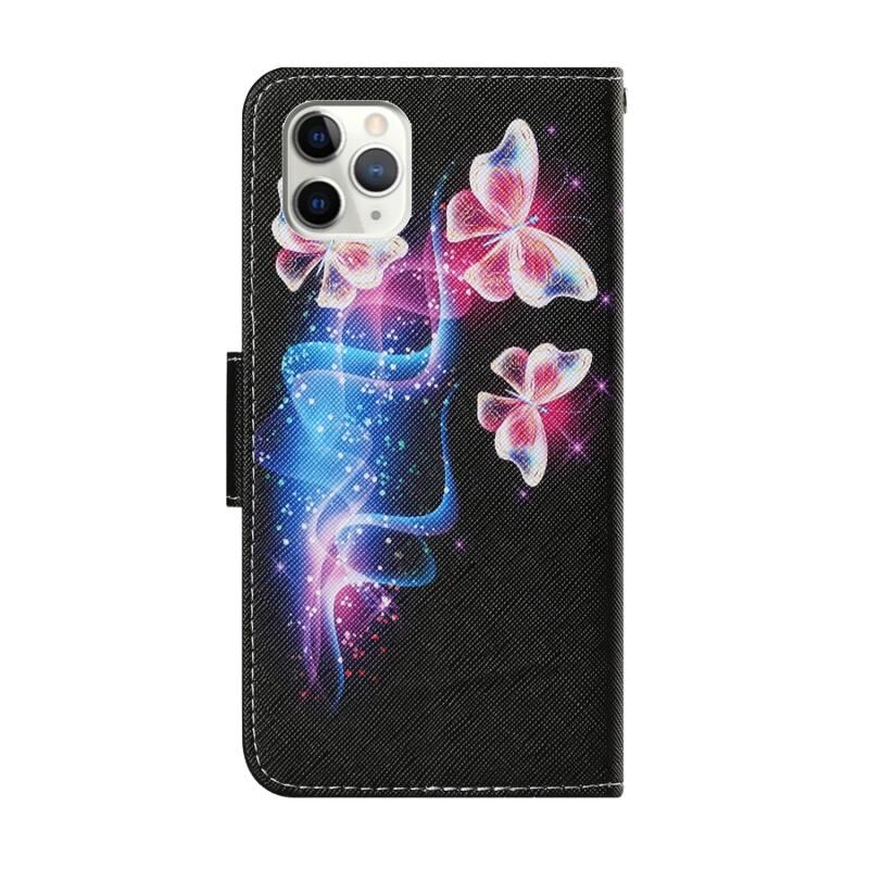Θήκη για iPhone 11 Pro, Δερμάτινη από PU με Οριζόντιο Άνοιγμα, με Σχέδιο Ζωγραφικής σε Χρώματα, Θήκη για Κάρτες, Πορτοφόλι, Λουρί και Στήριξη (Ζευγάρι Πεταλούδες)