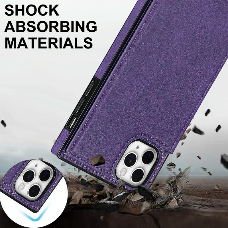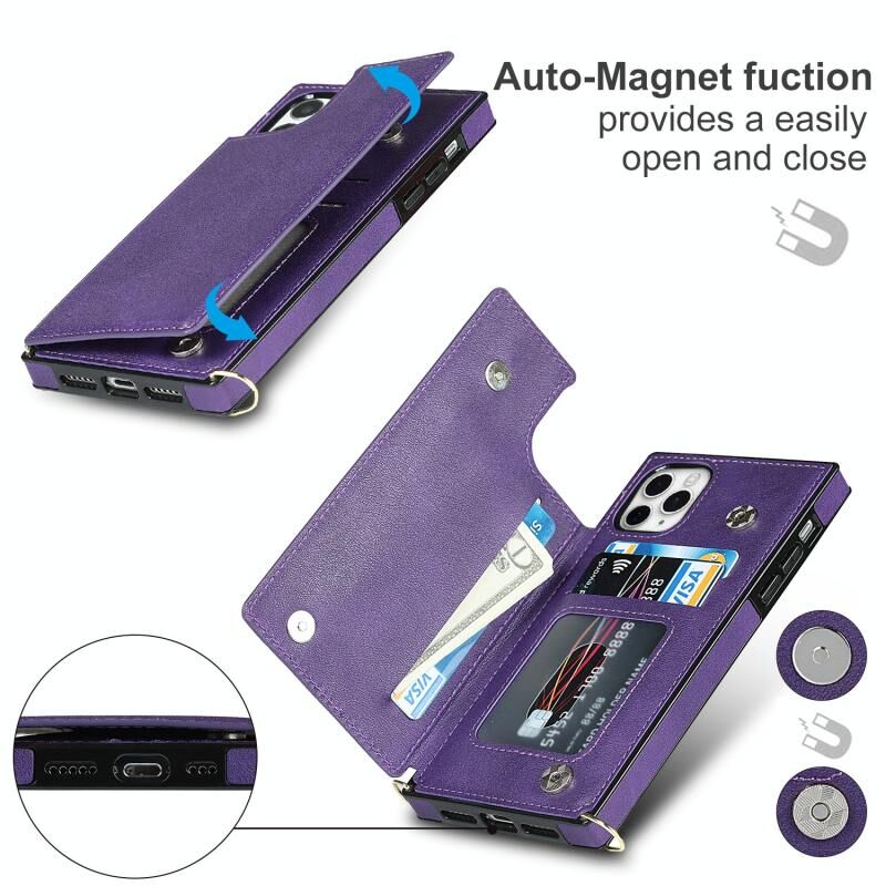 For iPhone 11 Pro Cross-body Square Double Buckle Flip Card Bag TPU+PU Case with Card Slots & Wallet & Photo & Strap (Purple)