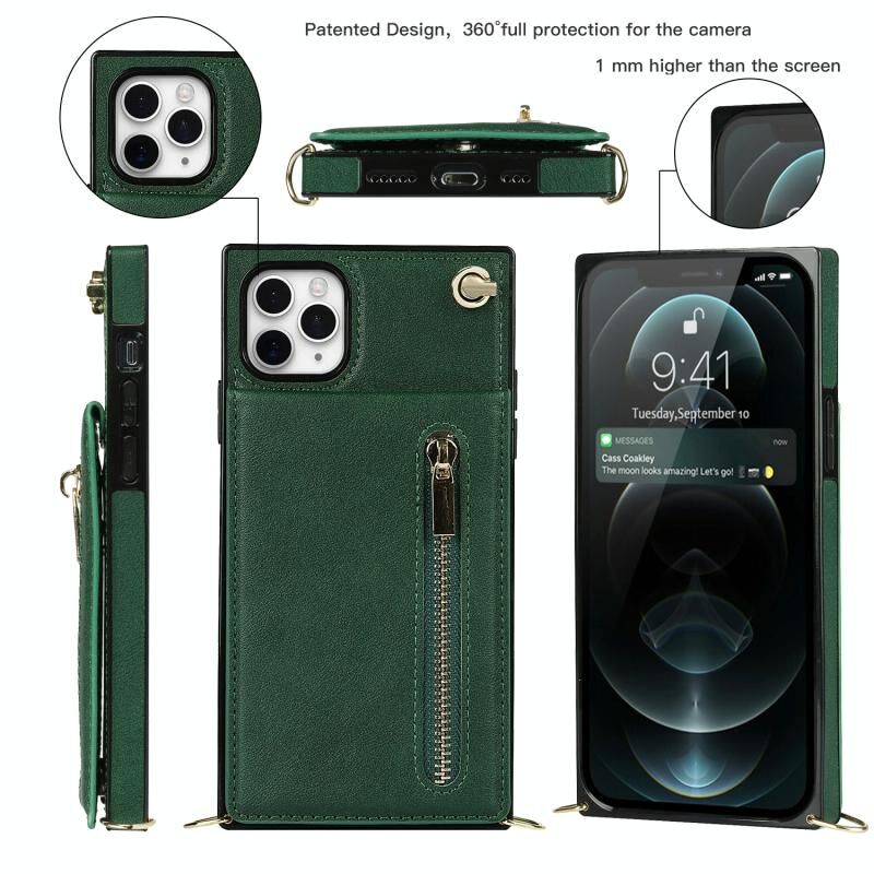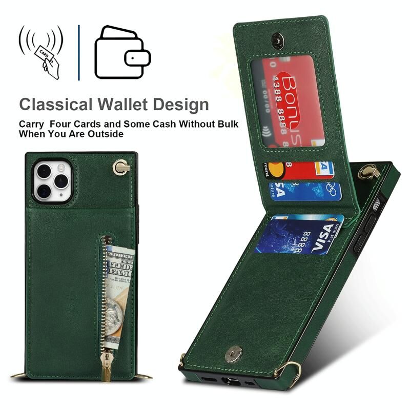 For iPhone 11 Pro Cross-body Zipper Square TPU+PU Back Cover Case with Holder & Card Slots & Wallet & Strap (Green)