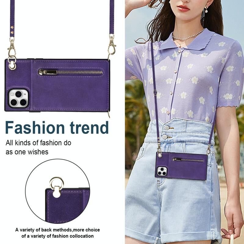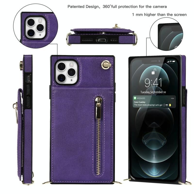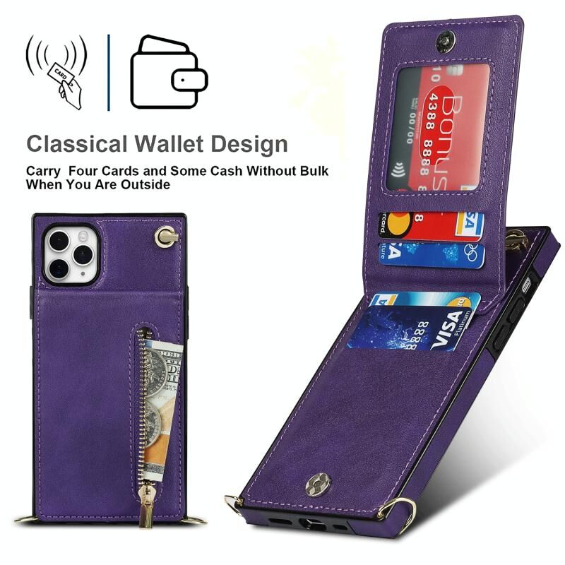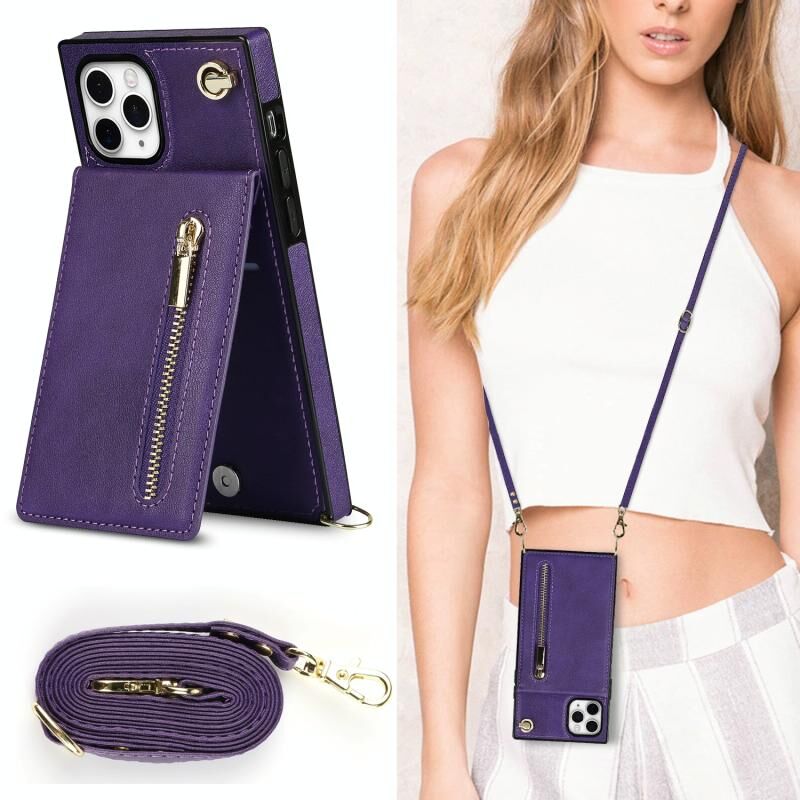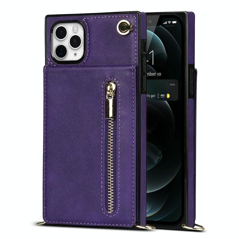 For iPhone 11 Pro Cross-body Zipper Square TPU+PU Back Cover Case with Holder & Card Slots & Wallet & Strap (Purple)