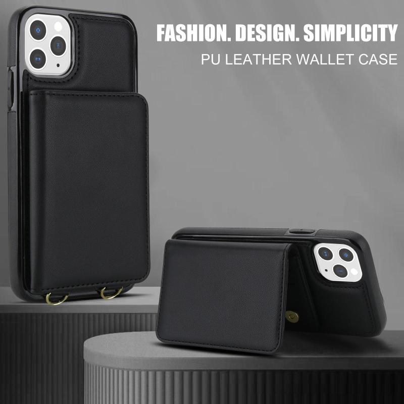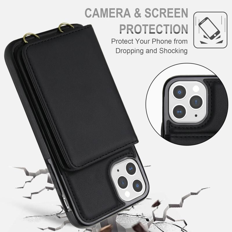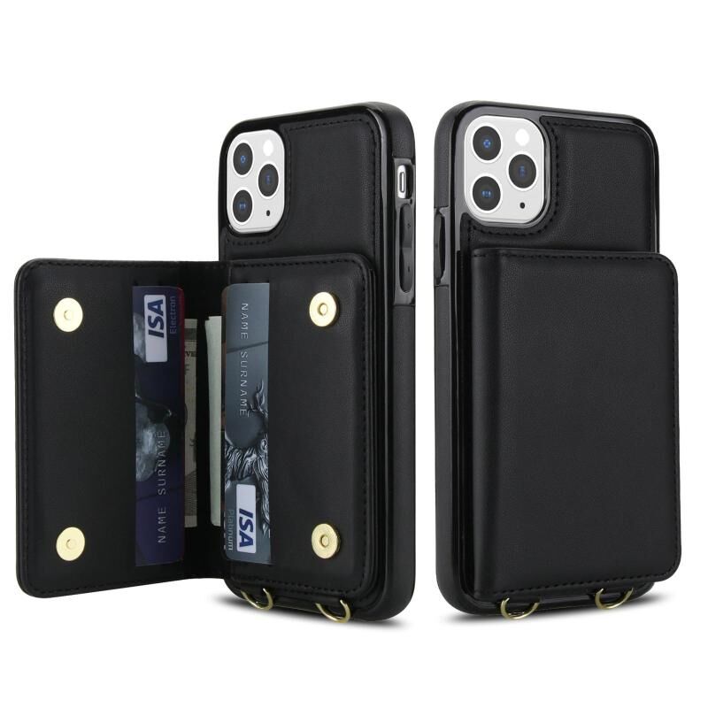 For iPhone 11 Pro Crossbody Dual-buckle Wallet RFID Back Leather Phone Case(Black)