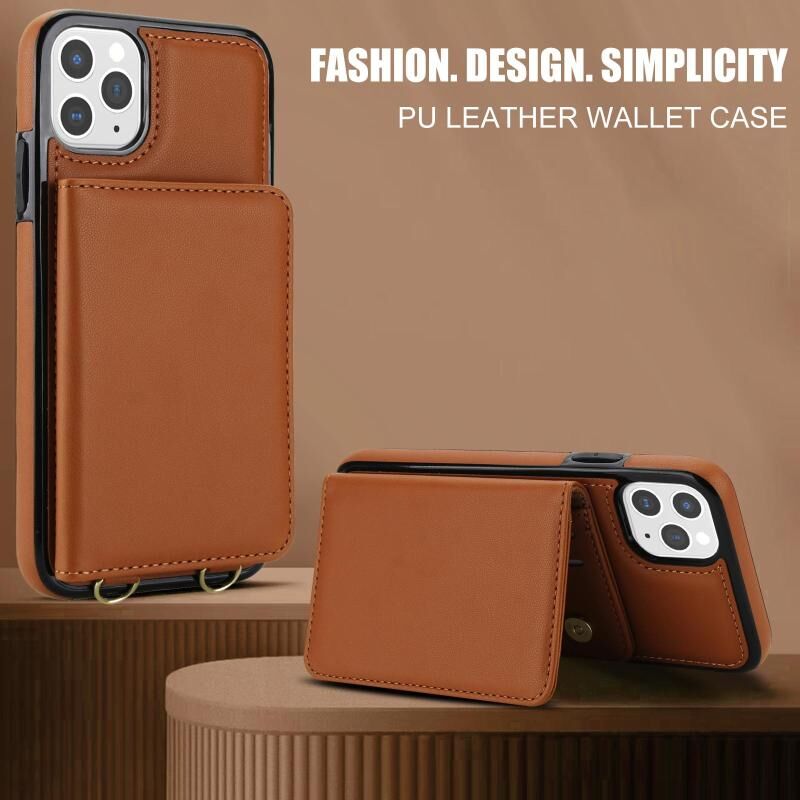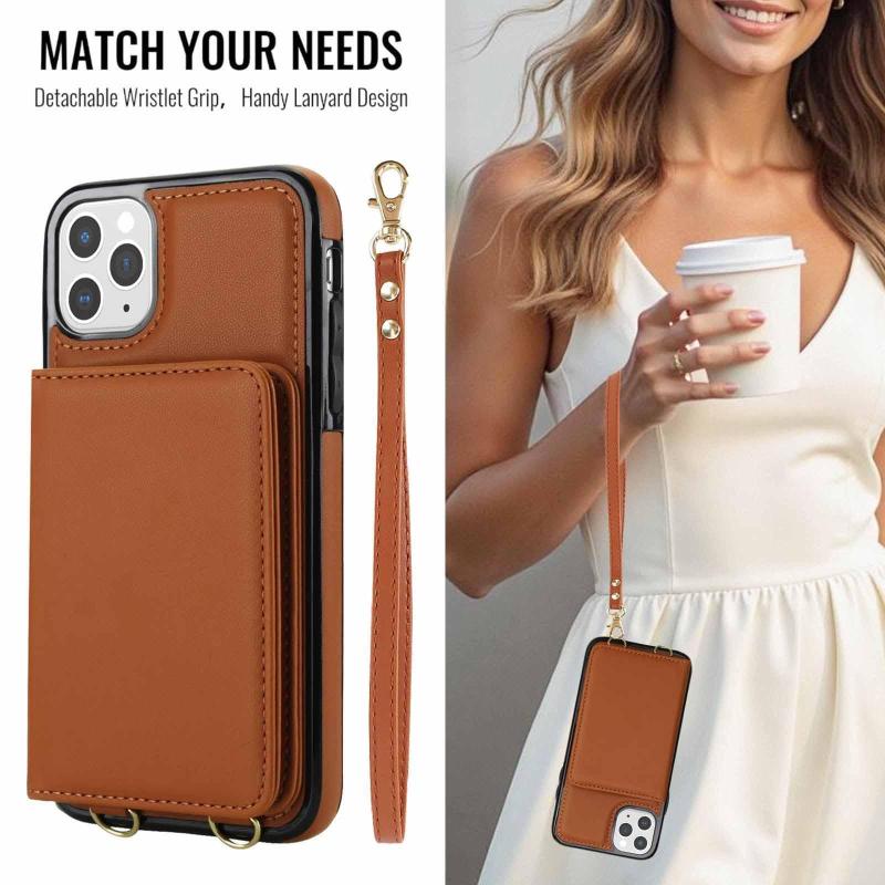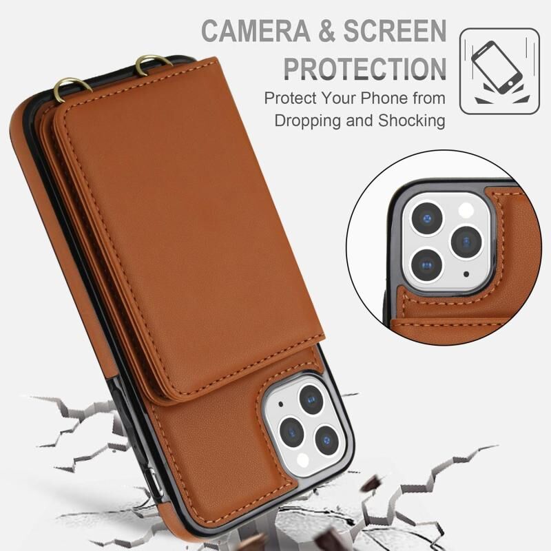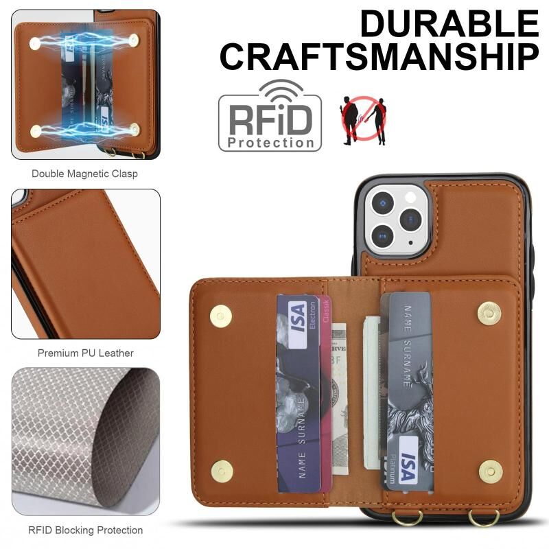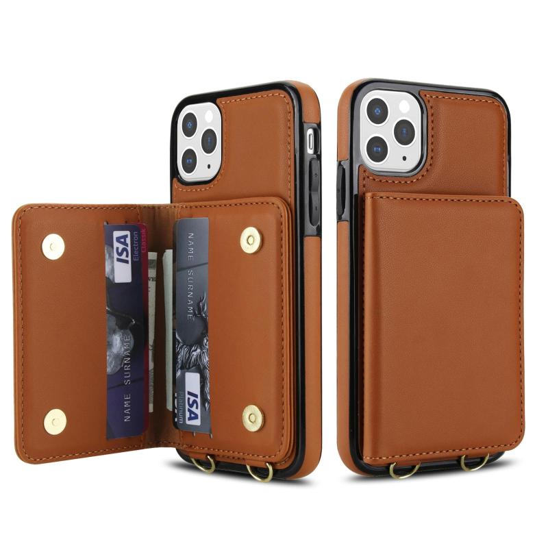 For iPhone 11 Pro Crossbody Dual-buckle Wallet RFID Back Leather Phone Case(Brown)