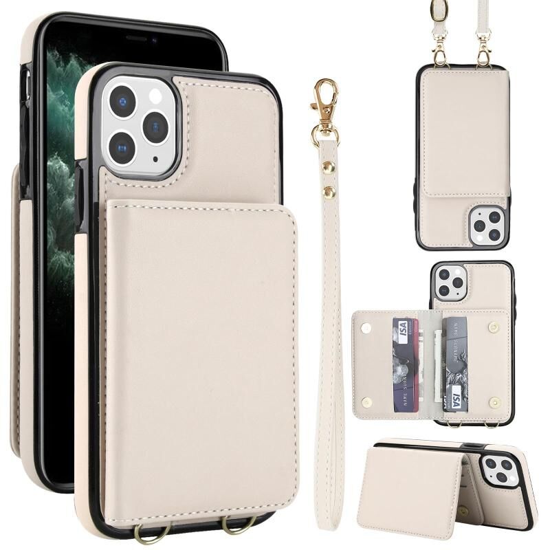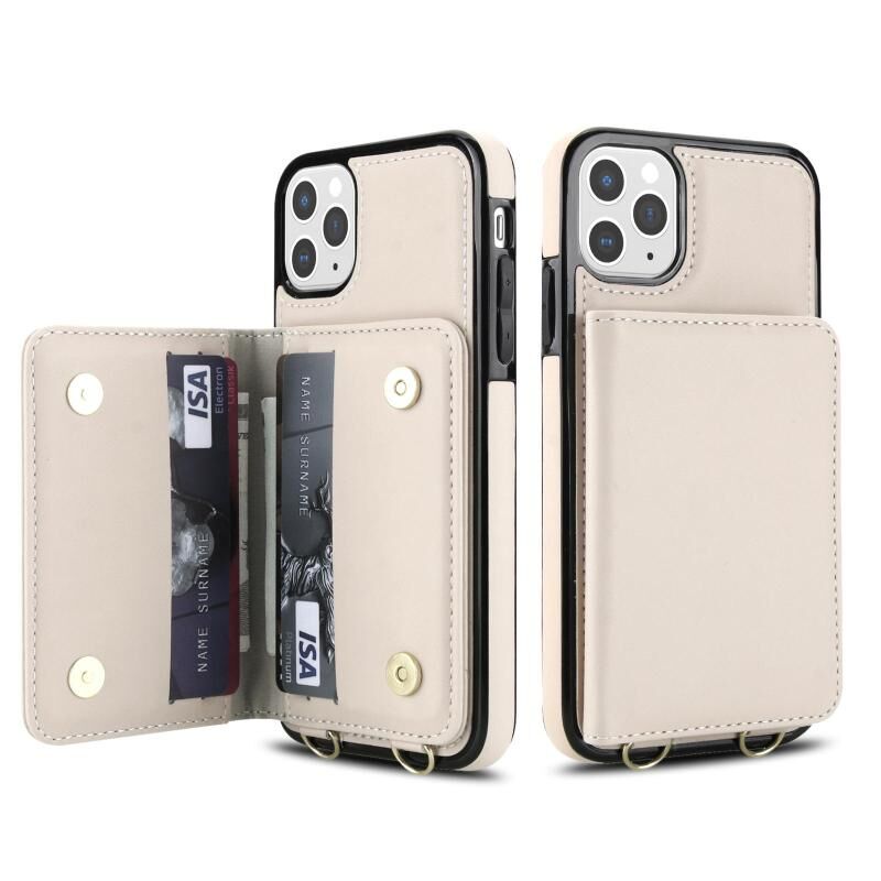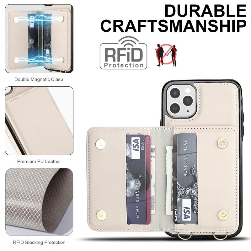 For iPhone 11 Pro Crossbody Dual-buckle Wallet RFID Back Leather Phone Case(White)