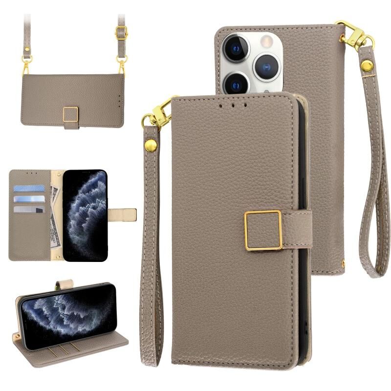 Θήκη τηλεφώνου για iPhone 11 Pro, Crossbody από δέρμα με υφή Litchi και τετράγωνη αγκράφα (Μπλε)