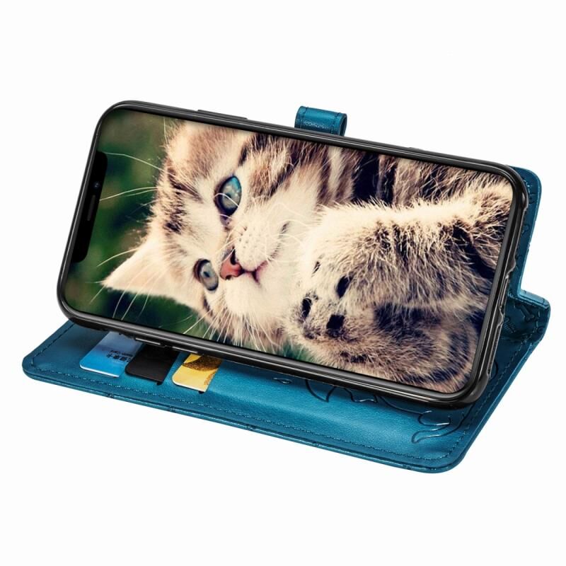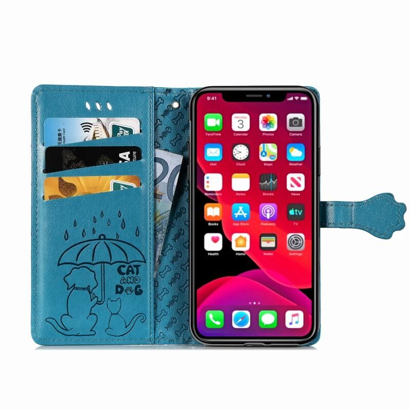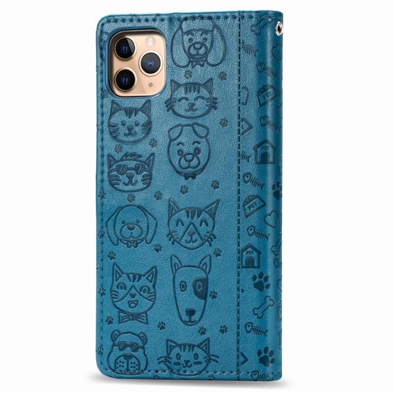 Θήκη για iPhone 11 Pro, χαριτωμένη με ανάγλυφα σχέδια γάτας και σκύλου, οριζόντια, από δερματίνη PU με βάση / υποδοχή κάρτας / πορτοφόλι / κορδόνι (Ροζ)