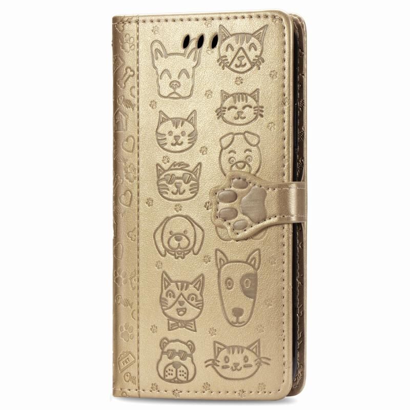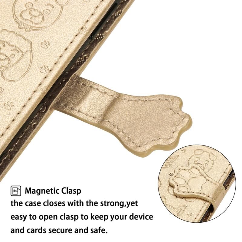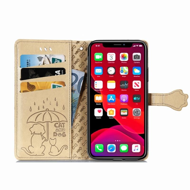 Θήκη για iPhone 11 Pro, χαριτωμένη με ανάγλυφα σχέδια γάτας και σκύλου, οριζόντια, από δερματίνη PU με βάση / υποδοχή κάρτας / πορτοφόλι / κορδόνι (Ροζ)