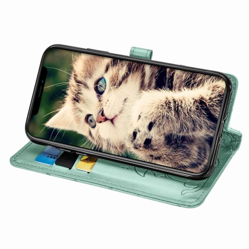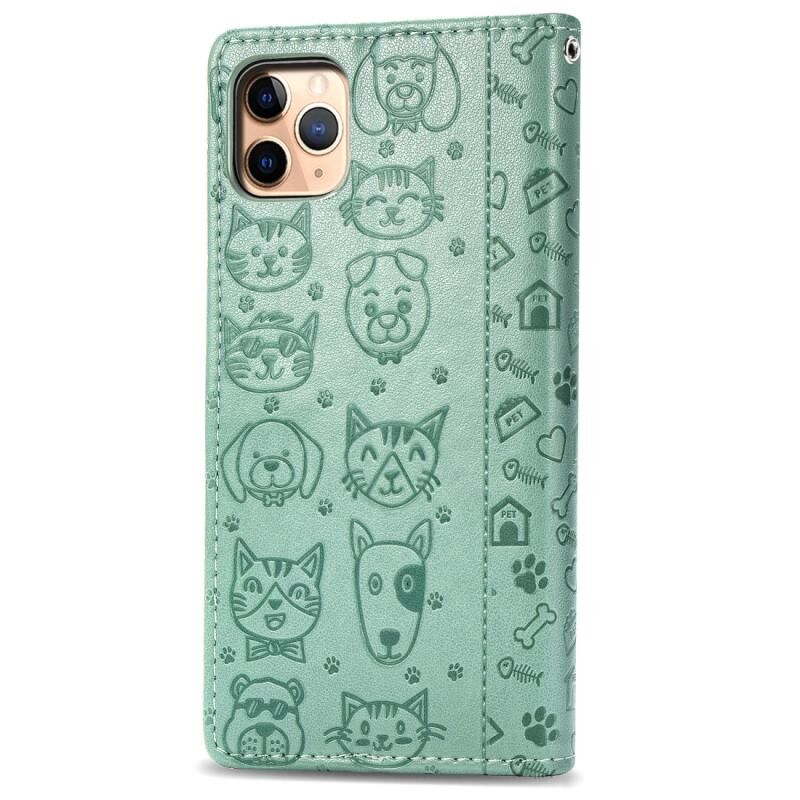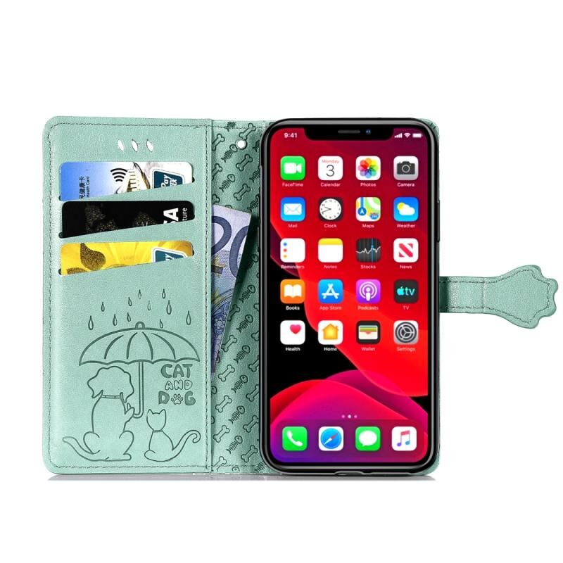 Θήκη για iPhone 11 Pro, χαριτωμένη με ανάγλυφα σχέδια γάτας και σκύλου, οριζόντια, από δερματίνη PU με βάση / υποδοχή κάρτας / πορτοφόλι / κορδόνι (Ροζ)