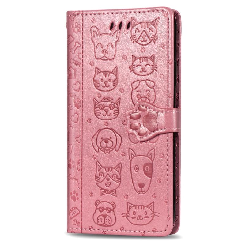 For iPhone 11 Pro Cute Cat and Dog Embossed Horizontal Flip PU Leather Casewith Holder / Card Slot / Wallet / Lanyard(Pink)
