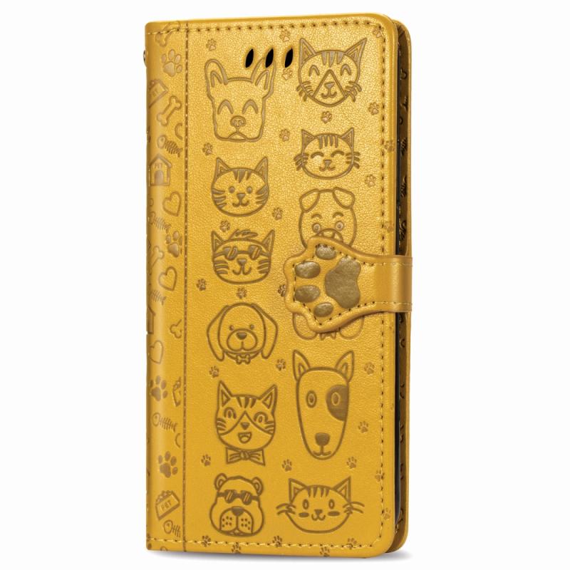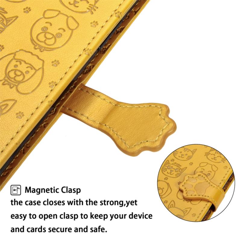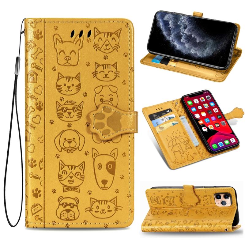 For iPhone 11 Pro Cute Cat and Dog Embossed Horizontal Flip PU Leather Casewith Holder / Card Slot / Wallet / Lanyard(Yellow)