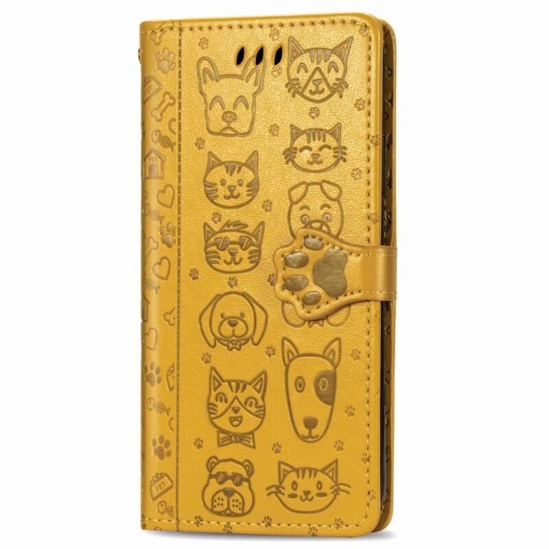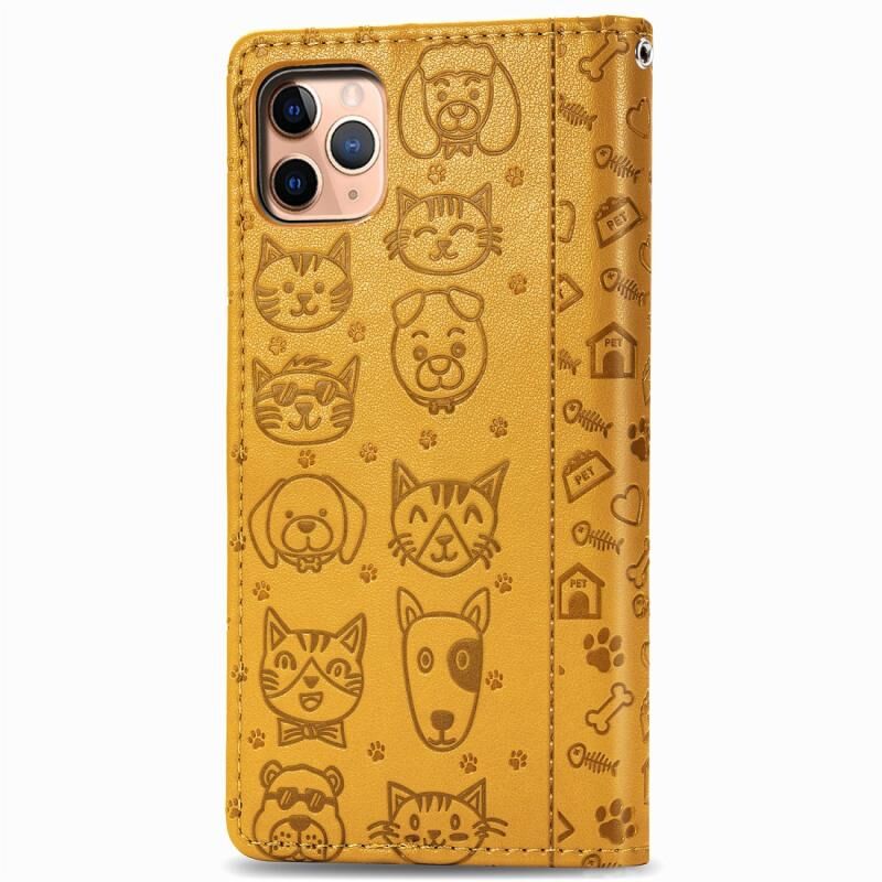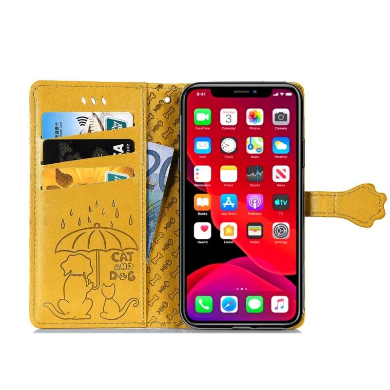 Θήκη για iPhone 11 Pro, χαριτωμένη με ανάγλυφα σχέδια γάτας και σκύλου, οριζόντια, από δερματίνη PU με βάση / υποδοχή κάρτας / πορτοφόλι / κορδόνι (Ροζ)