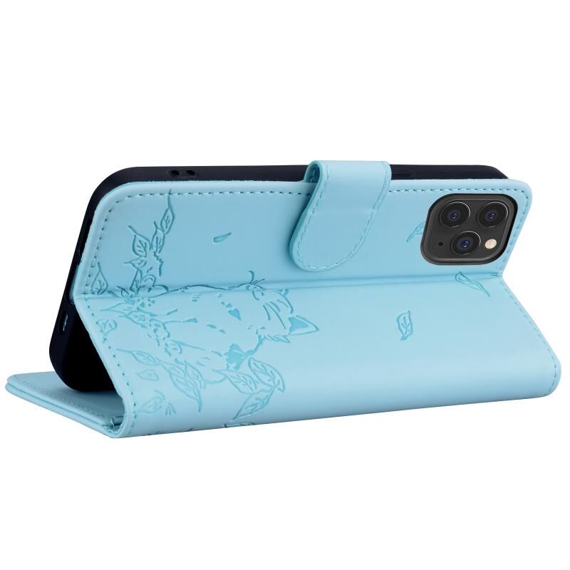 For iPhone 11 Pro Cute Cat Embossed Leather Phone Case(Sky Blue)