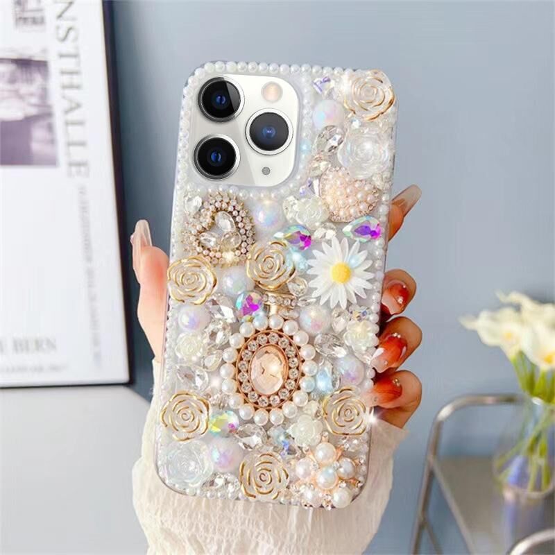 For iPhone 11 Pro Diamond Inlaid Rose PC Phone Case(White)