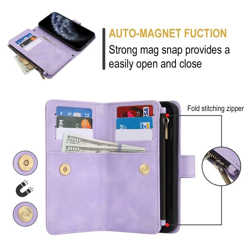 2. Λειτουργία πορτοφολιού πολλαπλών καρτών: 9 υποδοχές καρτών και 1 διαμέρισμα με φερμουάρ για την αποθήκευση των πιστωτικών σας καρτών, μετρητών ή μικρών χαρτονομισμάτων για καθημερινές ανάγκες.