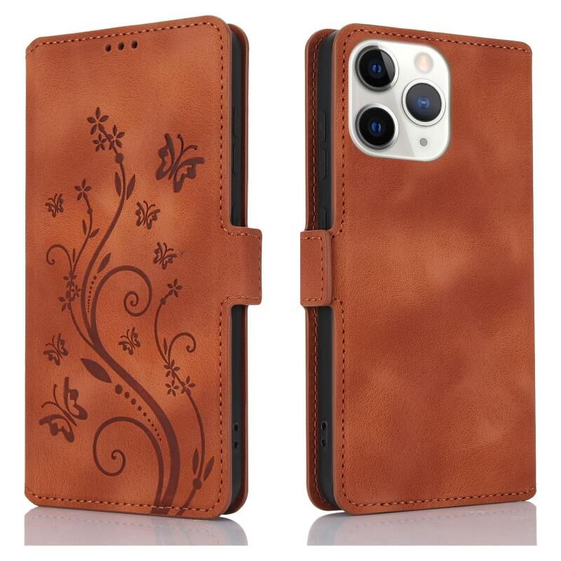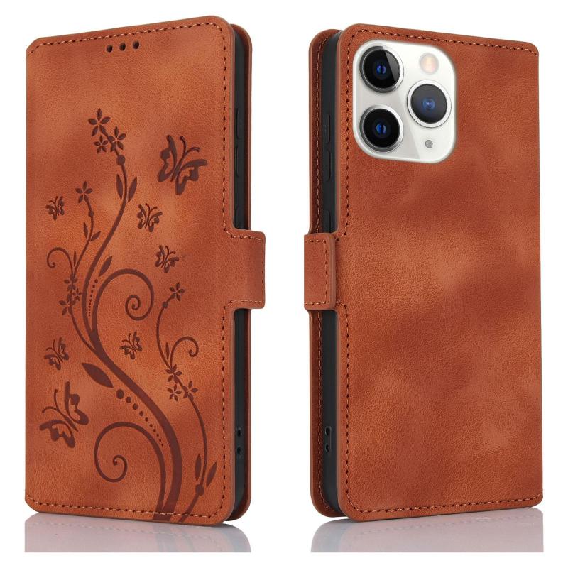 For iPhone 11 Pro Dreamy Butterfly Love Flower Embossed Leather Phone Case(Brown)