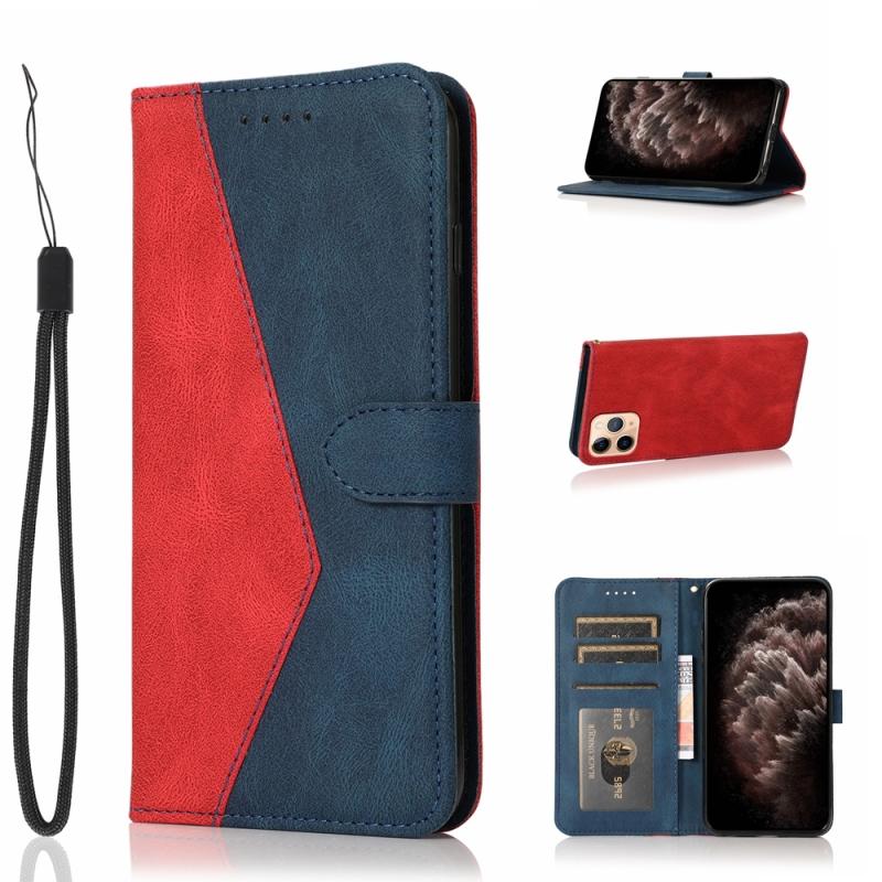 For iPhone 11 Pro Dual-color Stitching Leather Phone Case(Red Blue)