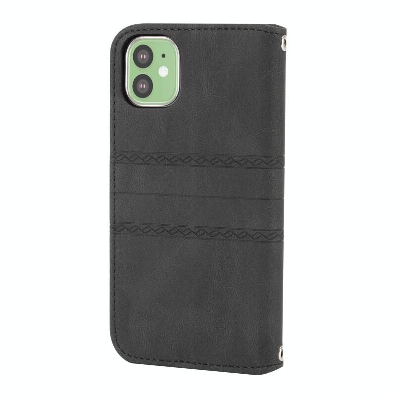 For iPhone 11 Pro Embossed Striped Magnetic Buckle PU + TPU Horizontal Flip Leather Casewith Holder & Card Slot & Wallet & Photo Frame & Sling (Black)
