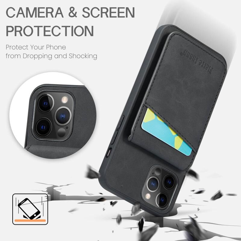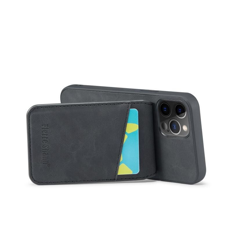 For iPhone 11 Pro Fierre Shann Crazy Horse Card Holder Back Cover PU Phone Case(Black) (FIERRE SHANN)