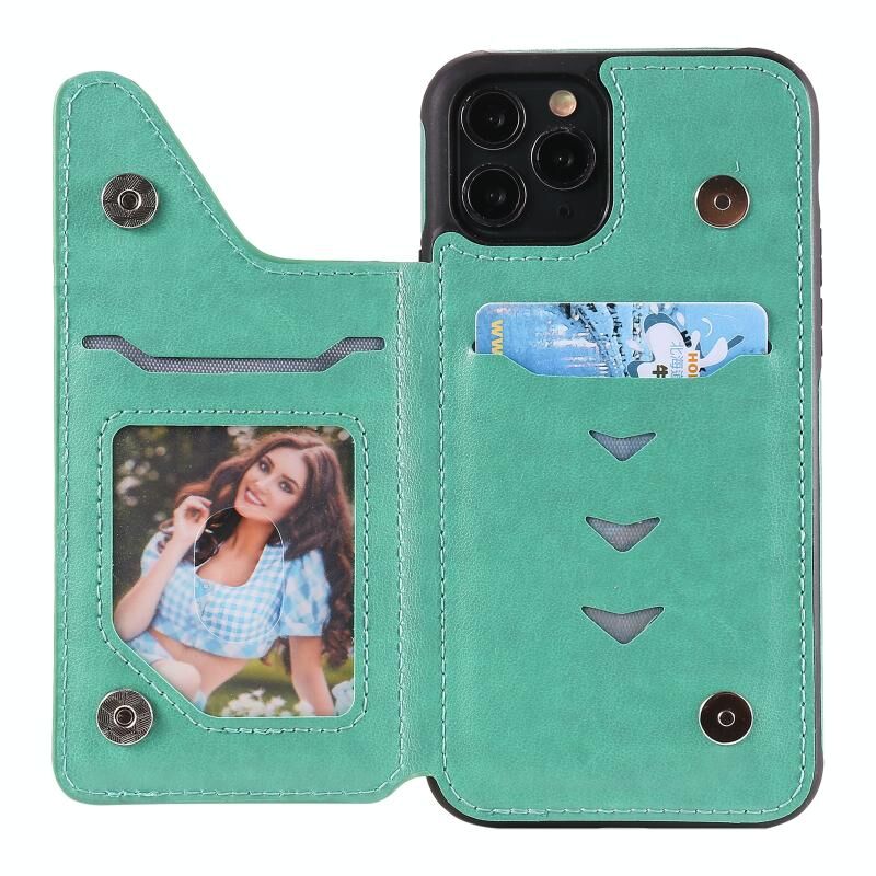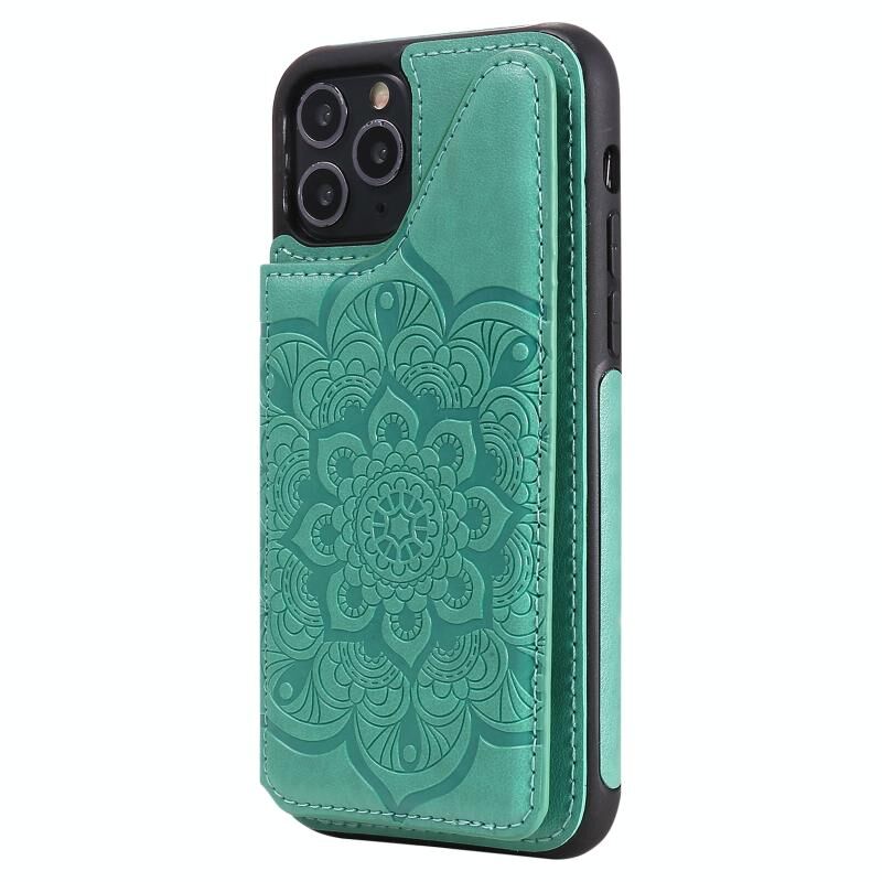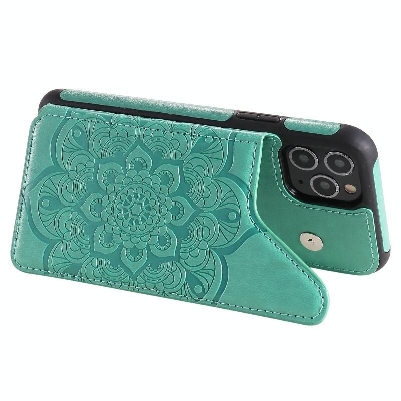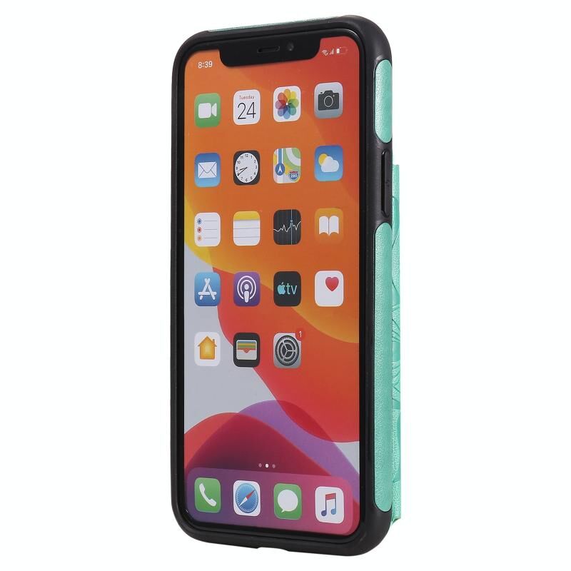 For iPhone 11 Pro Flower Embossing Pattern Shockproof Protective Case with Holder & Card Slots & Photo Frame (Green)