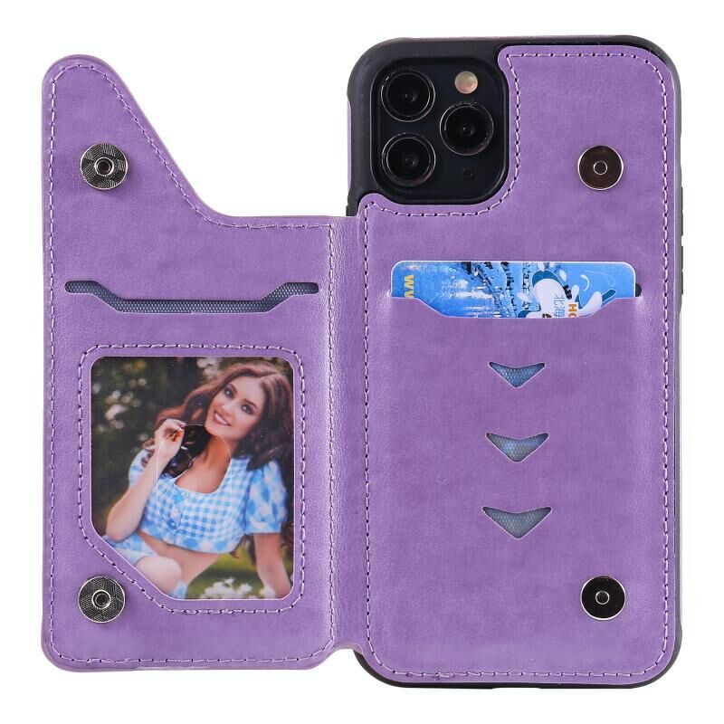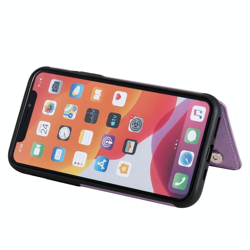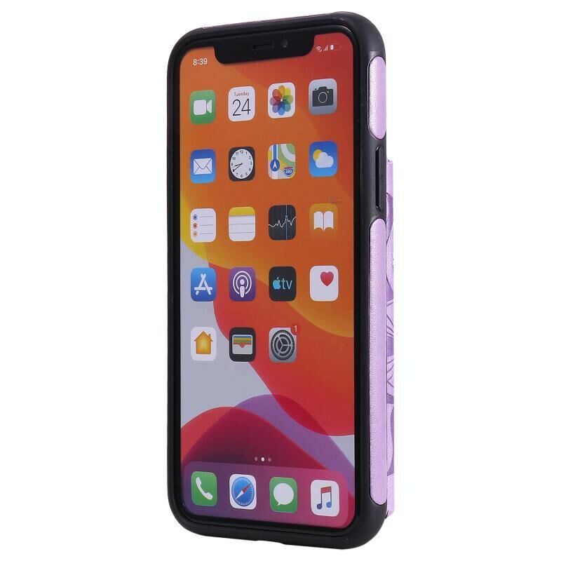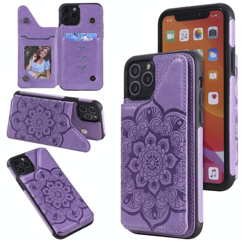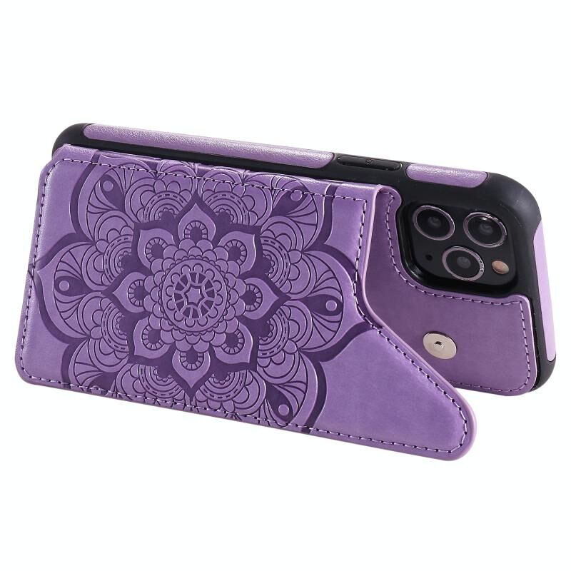 For iPhone 11 Pro Flower Embossing Pattern Shockproof Protective Case with Holder & Card Slots & Photo Frame (Purple)