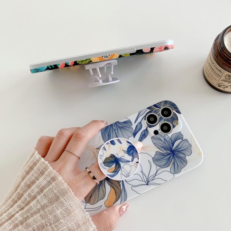 For iPhone 11 Pro Frosted Flowers Pattern IMD TPU Case with Folding Holder(Gray)
