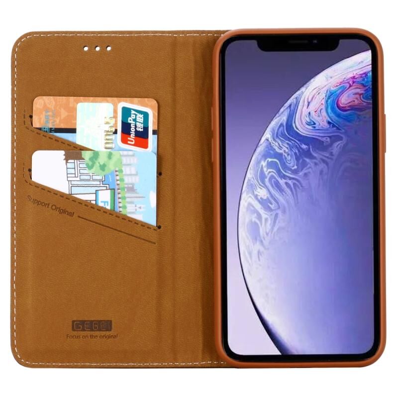 For iPhone 11 Pro GEBEI Top-grain Leather Horizontal Flip Protective Case with Holder & Card Slots(Brown) (GEBEI)