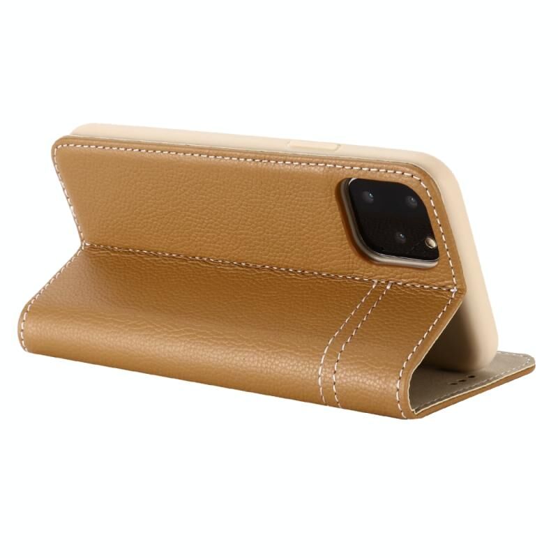 For iPhone 11 Pro GEBEI Top-grain Leather Horizontal Flip Protective Case with Holder & Card Slots(Khaki) (GEBEI)