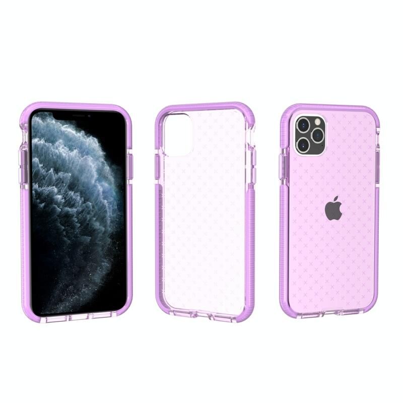 Για iPhone 11 Pro μοτίβο πλέγματος Αδιάβροχη διαφανής προστατευτική θήκη TPU (μωβ)