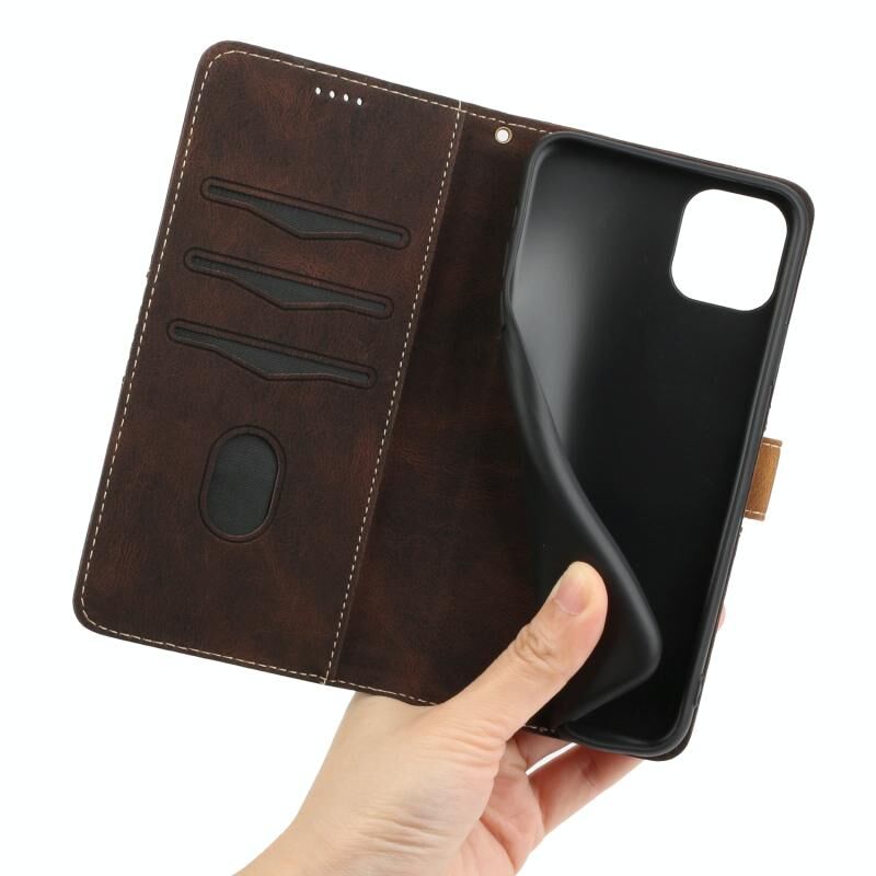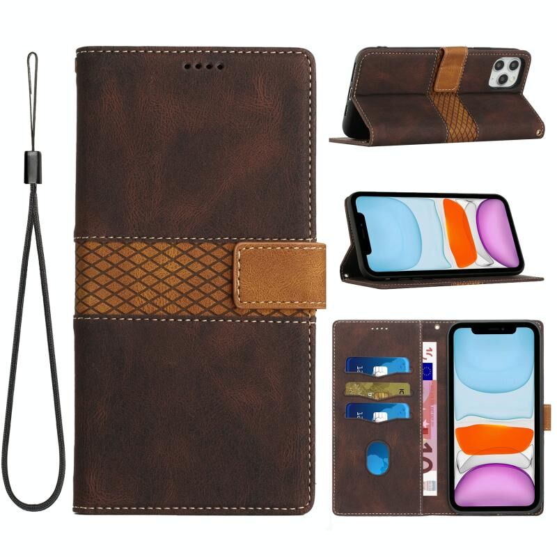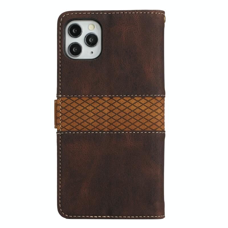 Θήκη τηλεφώνου από δέρμα με ραφή πλέγματος για iPhone 11 Pro με κορδόνι (Καφέ)