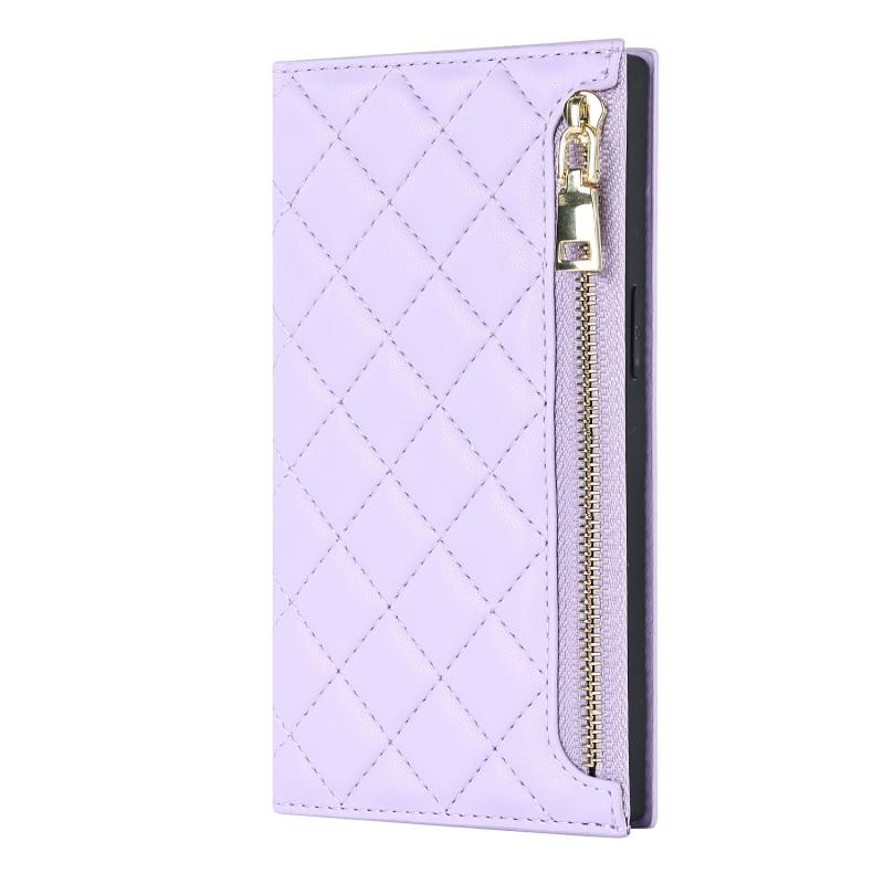 For iPhone 11 Pro Grid Texture Lanyard Zipper Leather Phone Case(Purple)