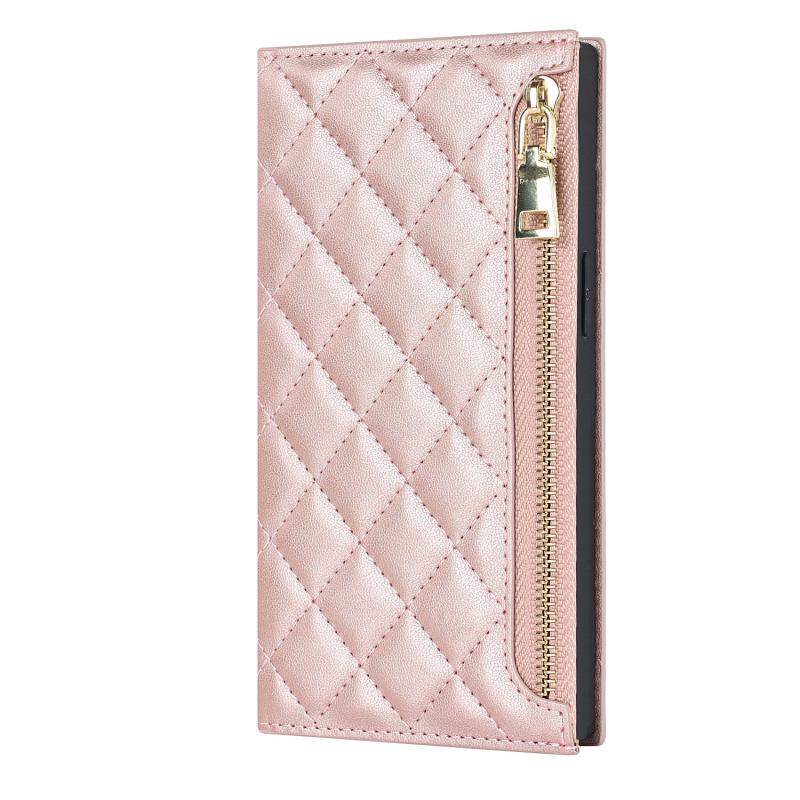 Θήκη τηλεφώνου δερμάτινη με φερμουάρ και λουρί με υφή πλέγματος για iPhone 11 Pro (Ροζ Χρυσό)