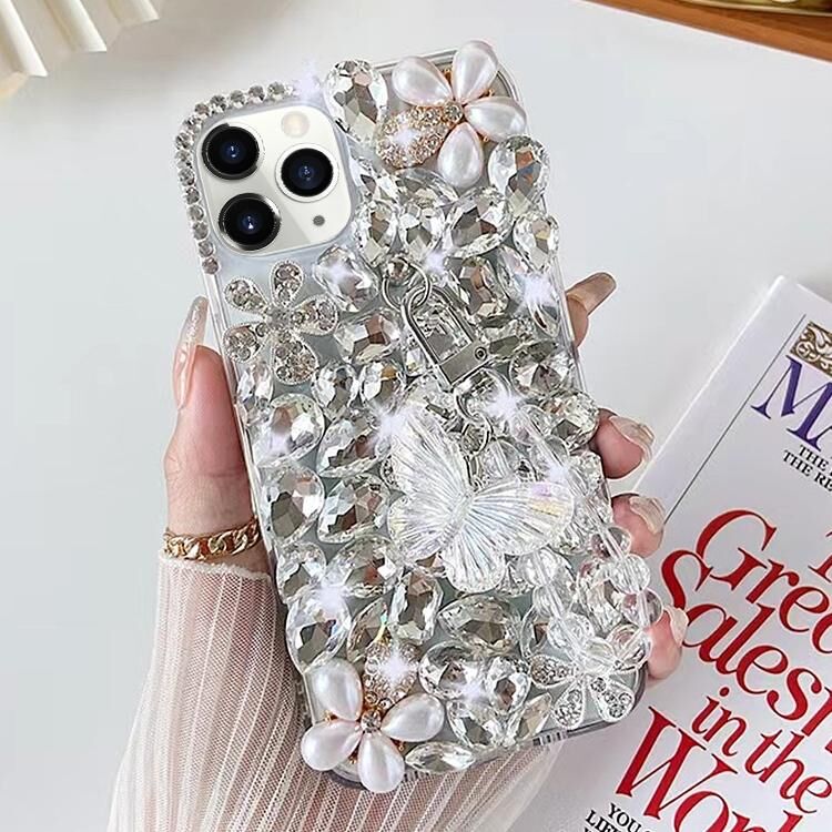 For iPhone 11 Pro Handmade Butterfly Diamond Inlay PC Phone Case(White)
