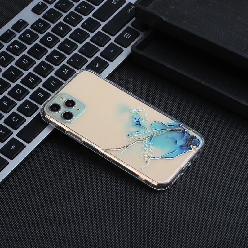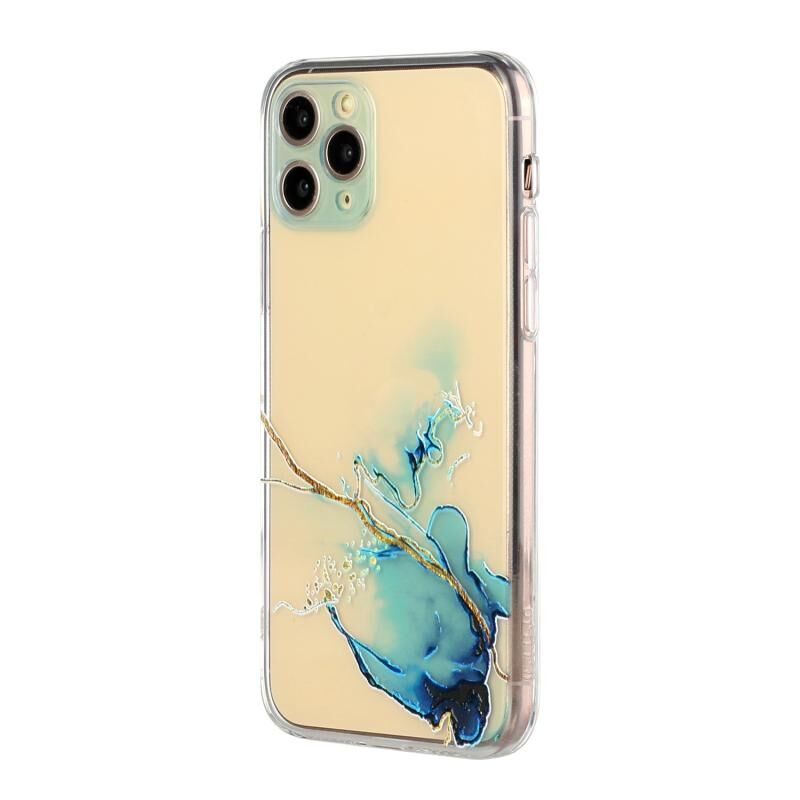 Θήκη προστασίας TPU με κοίλο σχέδιο μαρμάρου για iPhone 11 Pro, με ευθείες άκρες και λεπτές οπές (Κίτρινο Μπλε)