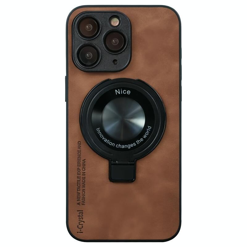For iPhone 11 Pro i.Crystal Lambskin Fulcrum Support Phone Case(Brown)