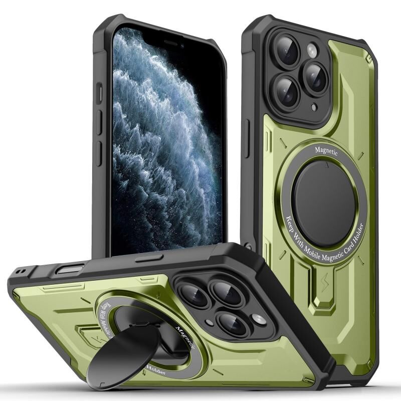 For iPhone 11 Pro Invisible Bracket MagSafe Magnetic Phone Case(Green)