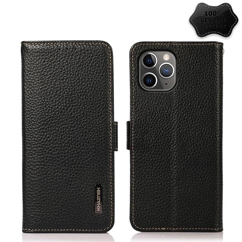 Θήκη KHAZNEH για iPhone 11 Pro με πλευρική μαγνητική σύνδεση, από γνήσιο δέρμα Litchi με προστασία RFID (Μαύρο)