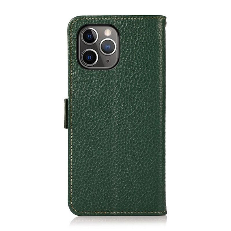 Θήκη KHAZNEH για iPhone 11 Pro με πλευρική μαγνητική σύνδεση, από γνήσιο δέρμα Litchi με προστασία RFID (Μαύρο)