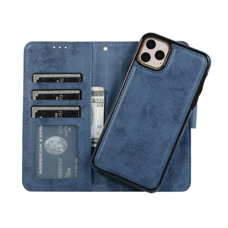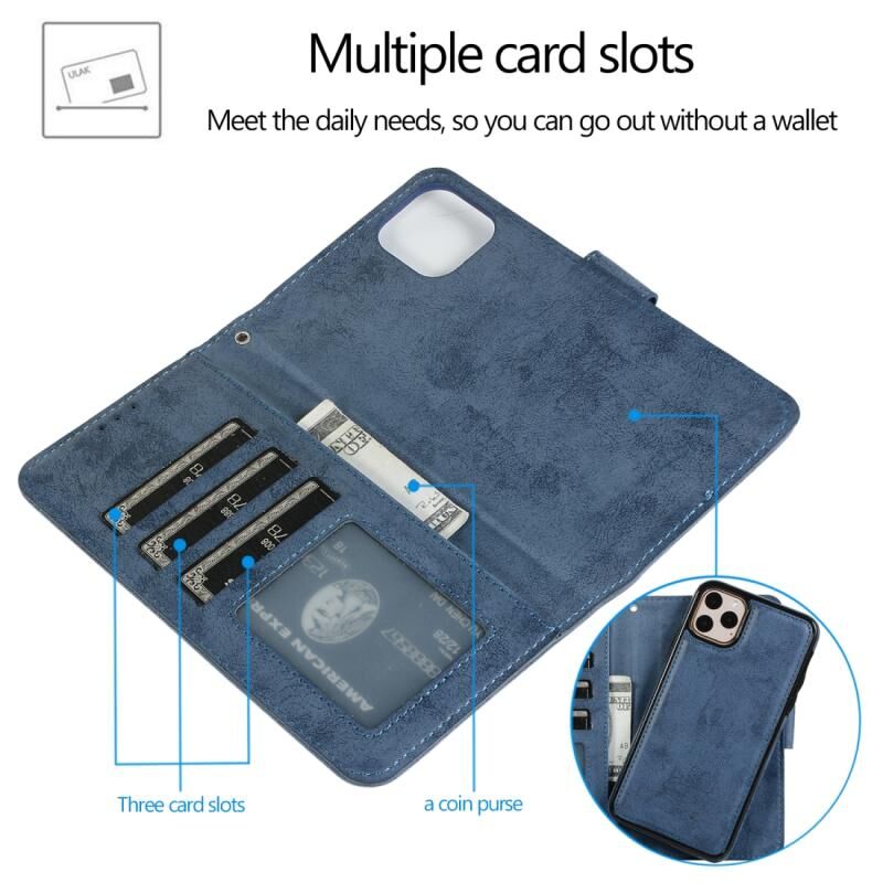For iPhone 11 Pro KLT888-2 Retro 2 in 1 Detachable Magnetic Horizontal Flip TPU + PU Leather Case with Holder & Card Slots & Photo Frame & Wallet(Dark Blue)