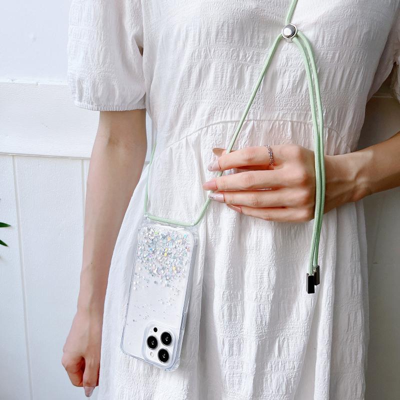 For iPhone 11 Pro Lanyard Glitter Epoxy Clear Phone Case (Black)
