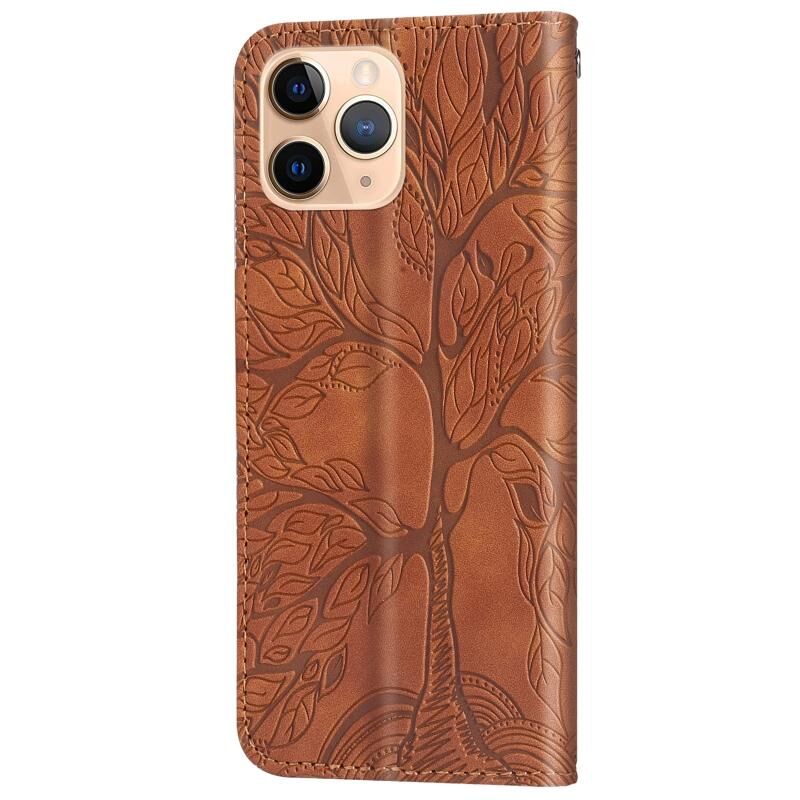 Θήκη για iPhone 11 Pro, Δερμάτινη οριζόντια θήκη με σχέδιο ανάγλυφου δέντρου, με βάση, θήκη για κάρτες, πορτοφόλι, κορνίζα φωτογραφιών & λουρί (Καφέ)