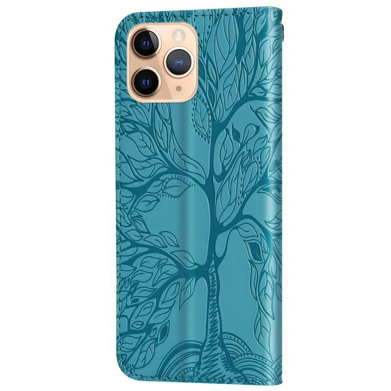 Θήκη για iPhone 11 Pro, Δερμάτινη οριζόντια θήκη με σχέδιο ανάγλυφου δέντρου, με βάση, θήκη για κάρτες, πορτοφόλι, κορνίζα φωτογραφιών & λουρί (Χρυσό ροζ)