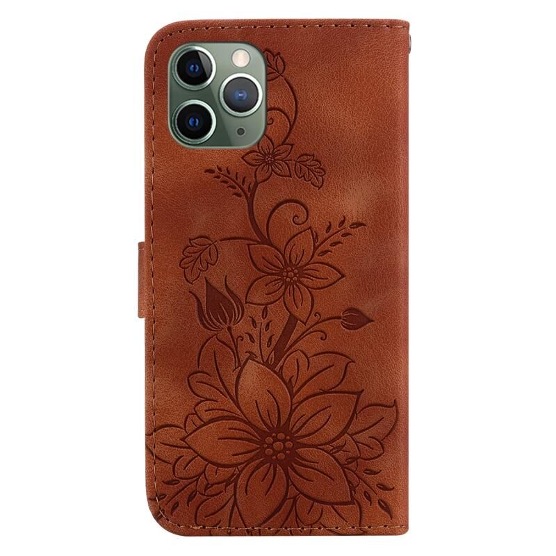For iPhone 11 Pro Lily Embossed Leather Phone Case(Brown)