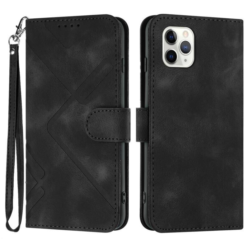 Θήκη τηλεφώνου δερμάτινη με υφή και σχέδιο γραμμής για iPhone 11 Pro (Μαύρο)